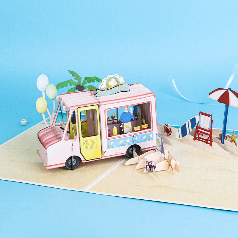 Biglietto di auguri di compleanno pop-up 3D per il camion dei gelati