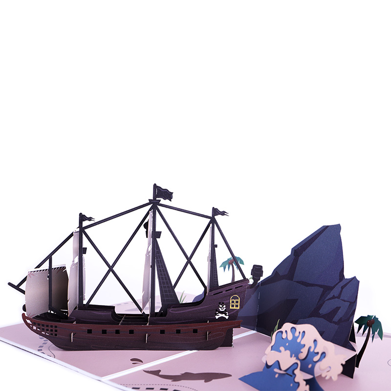 Biglietto d'auguri 3D Cosair per la nave pirata con squalo