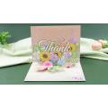 Biglietto d'auguri di ringraziamento pop-up 3D con bouquet di fiori rosa